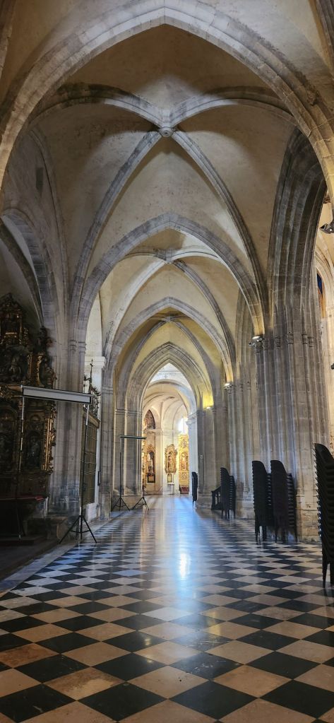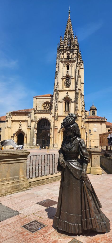 After lunch we visited the Oviedo cathedral which felt important as prospective pilgrims despite my lapsed Catholicism and Bilbys atheism. The cathedral was beautiful – different in style to the rich Cathedrals of Andalucía and feeling more trafficked. Less tourist hot spot and more a place of worship. Oviedo is the start of the Camino Invierno and we saw our first pilgrims and I felt a sudden pang at not yet having our credencial to stamp in the darkened apse.