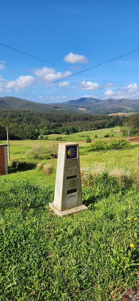 The path out of Ribadeo was not hugely well marked but we eventually found our first Camino route marker and yellow arrow and we were off. I had read the stage notes and was prepared for a climb but I don’t think I had really prepared for the fact that there is no flat. Today we either climbed or we descended. I had been ambivalent about hiking poles – I’ve never used them and wasn’t sure how finicky and awkward they would be. But – total convert. When walking down a steep path and you can have 3 points of contact at all times you can maintain normal walking pace. Obviously we are not the first to discover this but I also really appreciated how it helped with the hills – like some sort of advanced rock climbing technique.