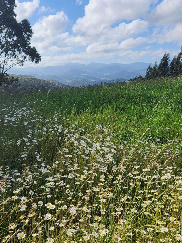 I’m too tired to come up with much else to say. I want to remember the wildflowers, the smell of eucalyptus through the first climb, the wild strawberries and the hydrangea hedgerows. Tomorrow is also a relatively short stage and also looks more flat. I am looking forward to it.