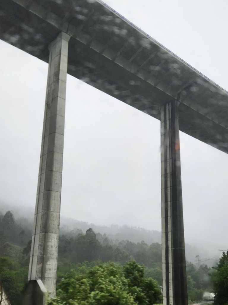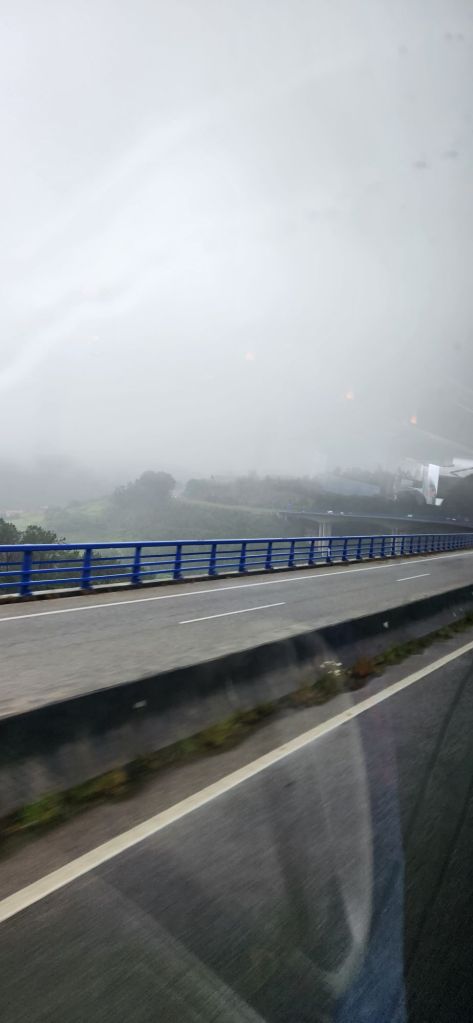 As we left the outskirts of Oviedo and later through Aviles I did not have many regrets at not starting our camino there as we picked up sodden pilgrim after pilgrim. The fabled views were very close in the fog and rain with ghostly bridges and gorges emerging as we sloshed past.