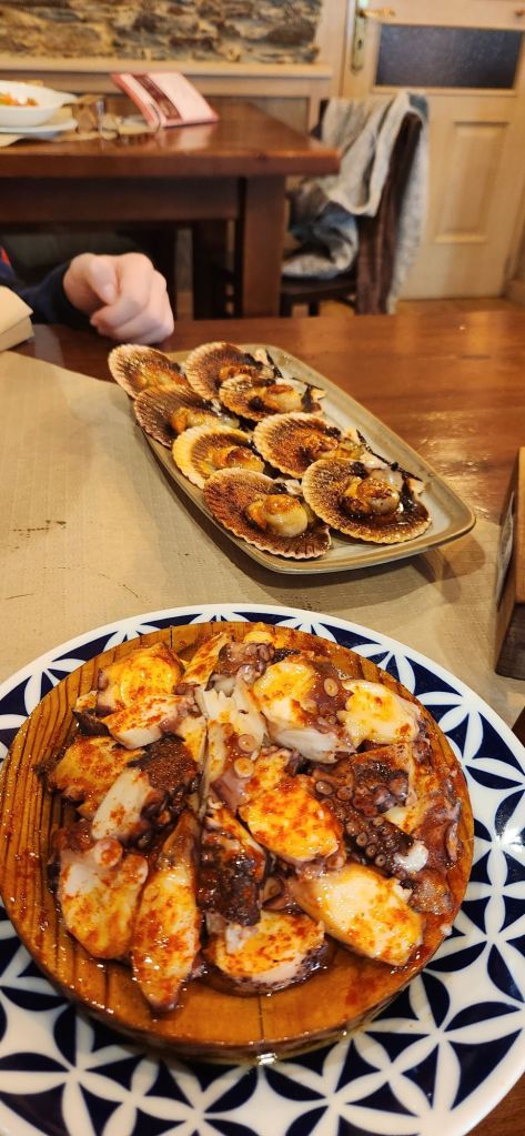 By now, having eaten a distant banana and a handful of cherries for breakfast I was ravenous and wanted to be inside somewhere warm with good food. Luckily Ribadeo is known for excellent seafood and the many restaurants (all, somewhat disconcertingly with >4* on Google) were all opening for lunch.